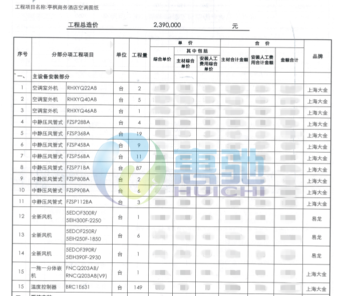 項目內(nèi)容:大金VRVD系列中央空調(diào) 易龍第五代全新風變頻空調(diào)機 酒店排風系統(tǒng)改造安裝