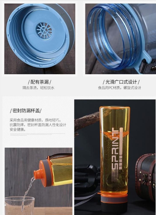 產品特點:食品用PC材質,月牙弧形纖細腰身,加寬加長提繩,外出攜帶方便,讓您喝的放心的水杯。
