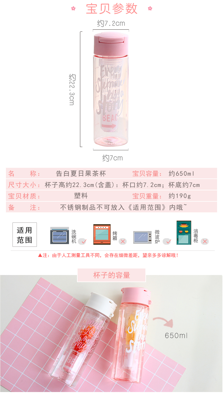 產(chǎn)品特點:食品級材質,攜帶方便,杯口圓滑,650ML容量,一款滿滿少女心的隨手杯