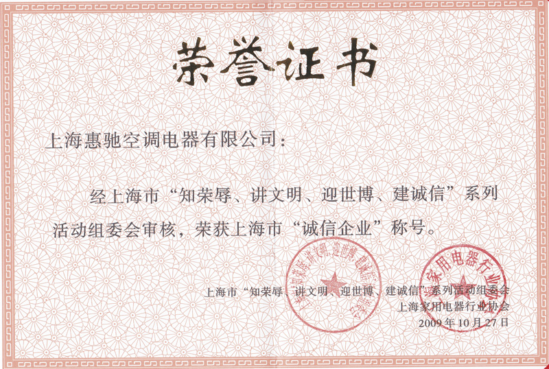 上海家用電器行業(yè)協(xié)會(huì)會(huì)員證書
